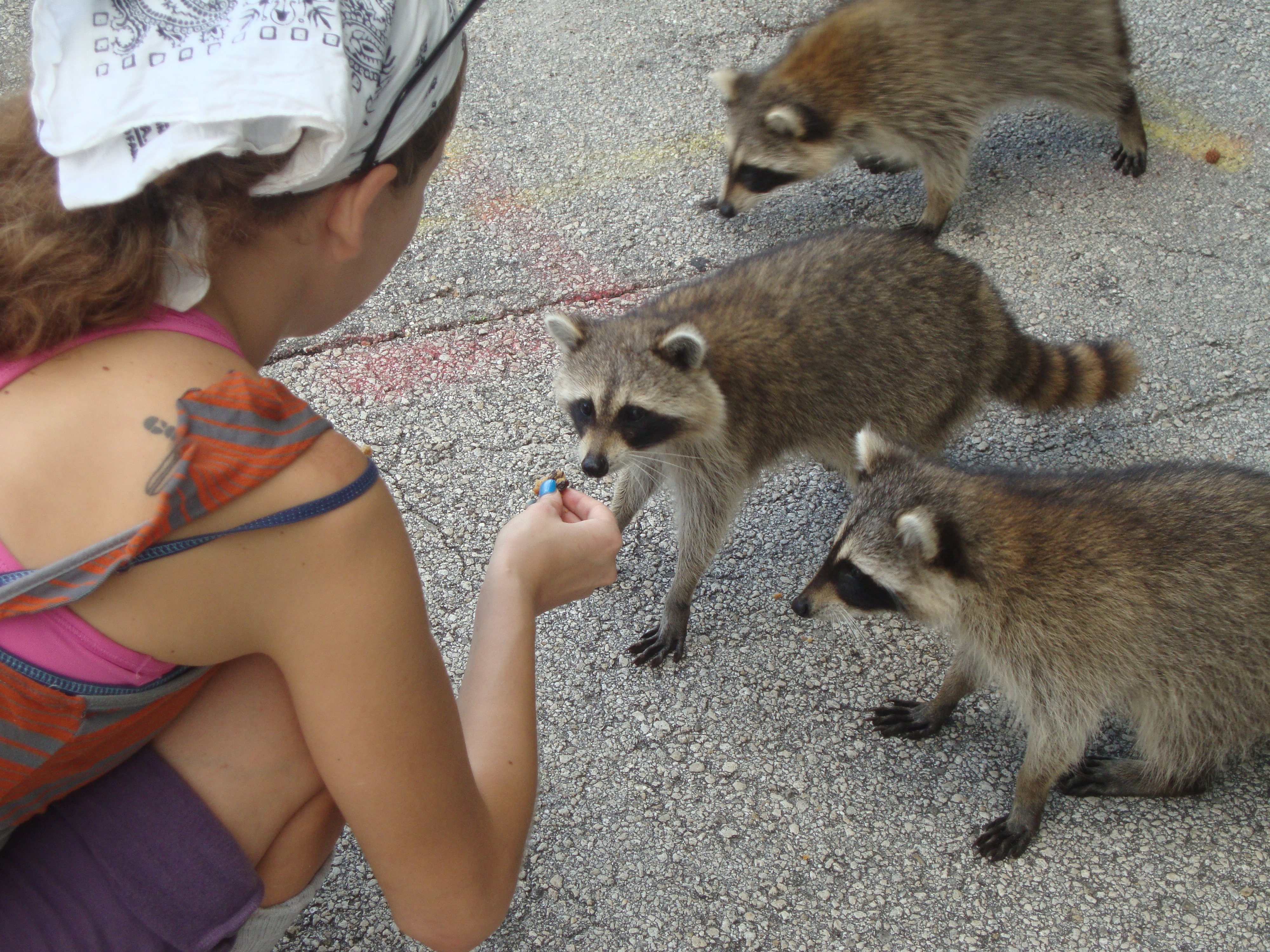 Subway was out of peanut butter cookies, which Addam said was their favorite, so I got oatmeal raisin, which didn’t seem to bother them one bit. They loved the treat so much that a few of them were literally taking pieces from my hands before I could drop it off to them. I was more scared than they were! It was incredible. I could have sat there feeding them all day. I felt like the raccoon whisperer.