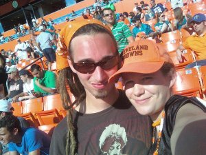 In the second quarter the score was 3 to 0, but a 60-yard field goal by the Dolphins tied up the game. (Nope, not a typo. The dude actually kicked the ball that far. I wasn’t for him, but I gotta give credit where it’s due). Both teams scored touchdowns, but in the end one kick separated the winners from the losers. The Browns brought it home, and we all celebrated like it was the Superbowl. Ok…not quite, but close…Dave was particularly excited as we made our way out through a string of high fives and “woof woof”s.