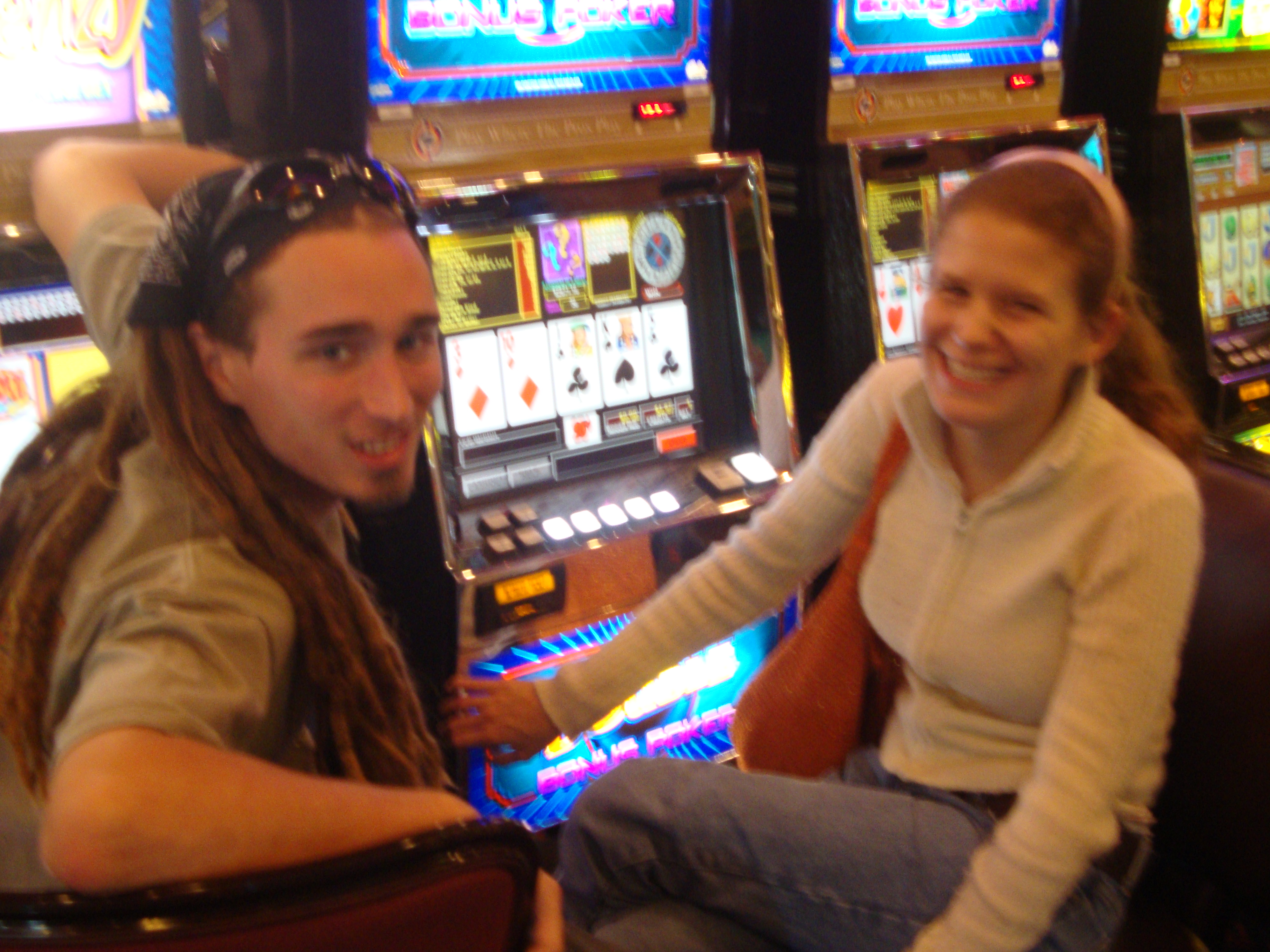gambling. Ok, ok, Addam and I spent a total of $15 and didn’t play anything but slots and video poker, but it was so much fun just being there! I’ve always wanted to go to a casino, but the people watching was more entertaining than the games. I couldn’t believe the number of people throwing $20, $50, even $100 bills into the machines, only to go through it all in about 2 minutes. A lot of people seemed to be having a great time, but the majority seemed kind of lonely. It made me feel very fortunate that I was there with Addam.