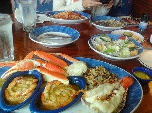 Despite the time change, Krysti and I made it up by 10 for a Sunday brunch at Red Lobster. Addam had to be into work at 8 but told us that if we got there before 12 he could fix us up something special. He made me linguine with a basil marinara sauce, and Krysti got the “Ultimate Feast” — a lobster tail, crab legs, shrimp scampi and rice pilaf. We stuffed ourselves, said hello to Addam and left to waste time before he got home.