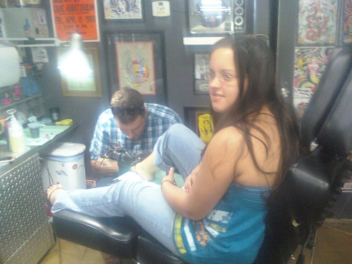 There was a tattoo parlor right next door, and since Krysti came to Miami with the intention of getting her tattoo covered up, we stopped by to see what they could do. They weren’t open for business yet, but since we’re so cute they drew a design on Krysti’s foot for free.