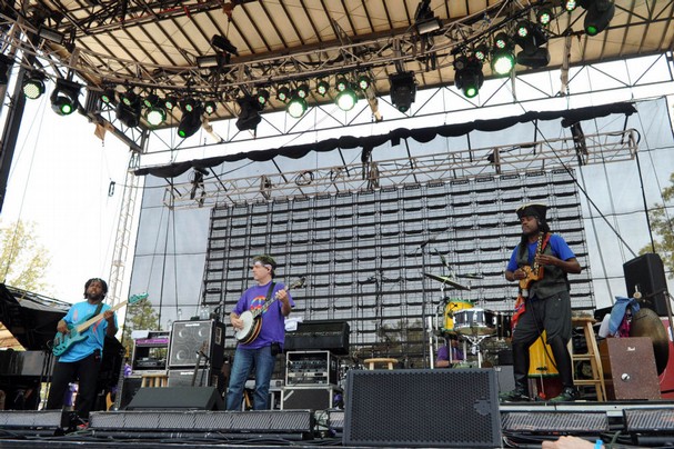 Once we were fueled up we all headed to Centeroo to check out Bela Fleck & the Flecktones at 2 p.m. It was deathly hot and extremely dusty, and somehow Addam and I got separated from John and Tati as soon as we got to the show.