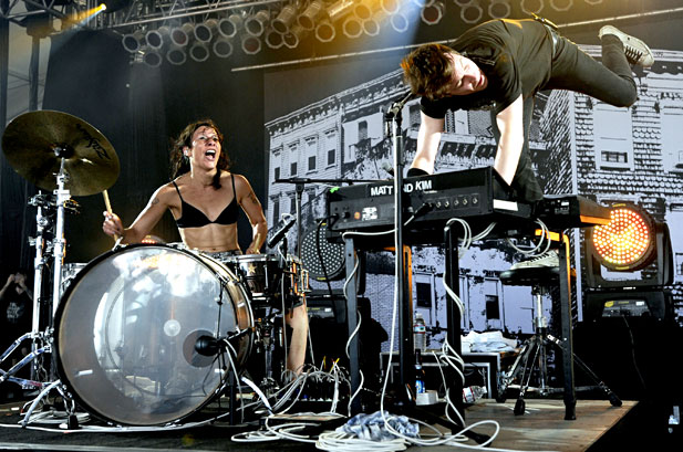 From there Addam and I headed over to This Tent to see Matt and Kim. Even though the boy downloaded a ton of their stuff as soon as Bonnaroo’s line up was released, I didn’t really know much about them. (I mean, besides that they’ve performed on Sesame Street.) Little did I know just how intense their shows really are.
