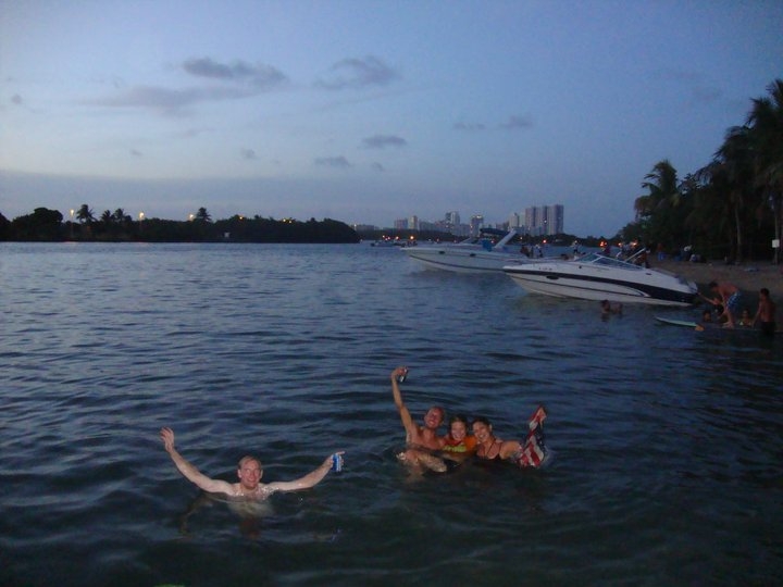 After a couple of drinks, a few dips in the warm water and hours of laughs, the boat was roaring and ready to go… about two minutes before we were all about to pack everything up and head to Hollywood Beach. While I know we would have had a great time regardless of what we were doing, I’m glad the yacht got started, as it was the first time Addam and I have actually been out on a boat since moving to Miami. (Unless you count Ben’s canoe, which I guess you should. While I had an awesome time, it’s a lot different when you don’t have to do all the rowing. We did, however, go to the same island.)