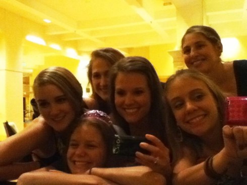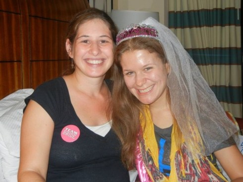 Katie and Danae showed up right after we reached the room, and the festivities started shortly there after. Katie and Emily had planned a “liquor and lace” party for me, and we celebrated with some sexy lingerie, vodka and wine. Judy ran out to get some rum, so by the time we got to the games, we were all feeling pretty “spirited.” 😉