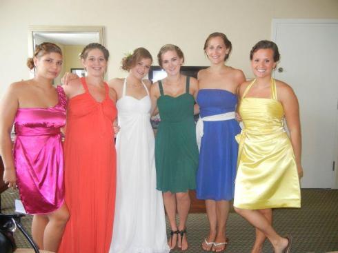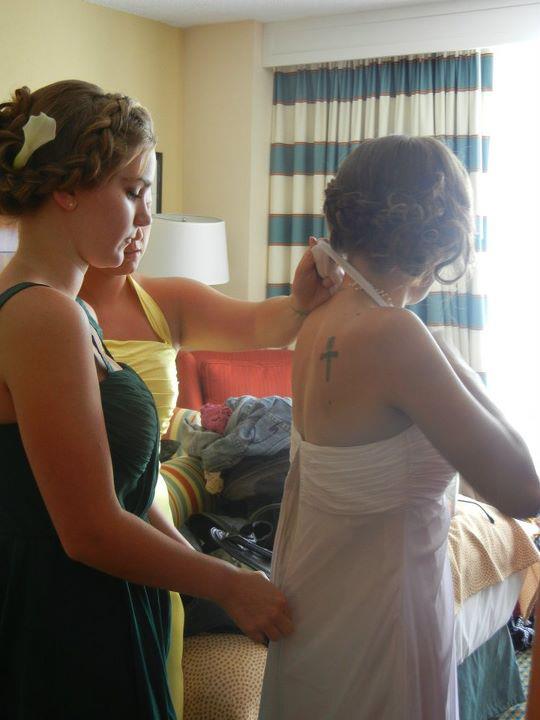 We only had about a half hour to get ready, but I had six of my best girls around me to help me suit up and strap in. Courtney used to work at a flower shop, so she helped place calla lillies in Heather, Emily and my hair. (Thank goodness she was there, as we probably would have looked a mess without her.)