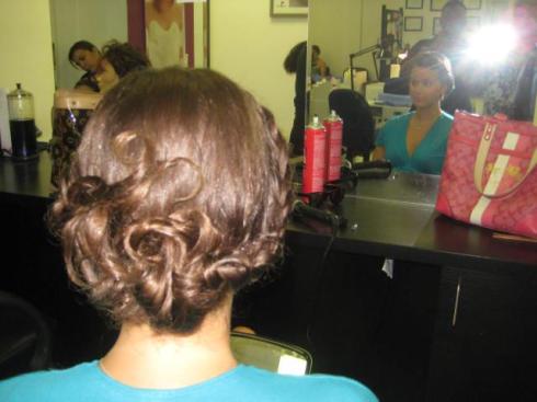 Alena, who I work with at Miami Today and who graciously volunteered to help me out with my makeup, met us at the beauty school, but there were so many people working on me that she didn’t have a chance to do much of anything. She started on my makeup as soon as we got back to the Hilton.