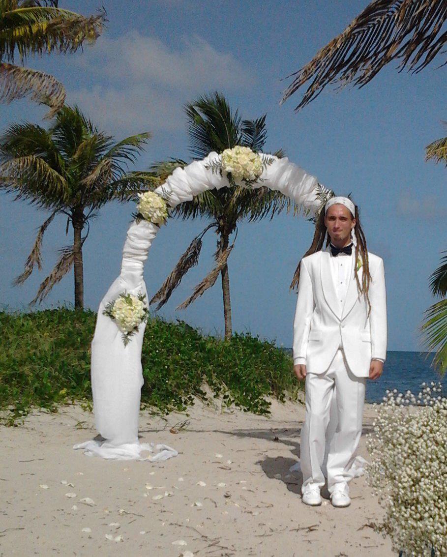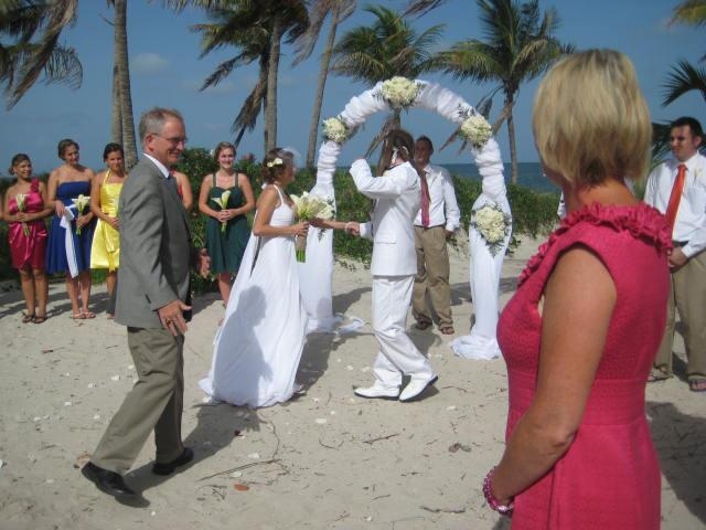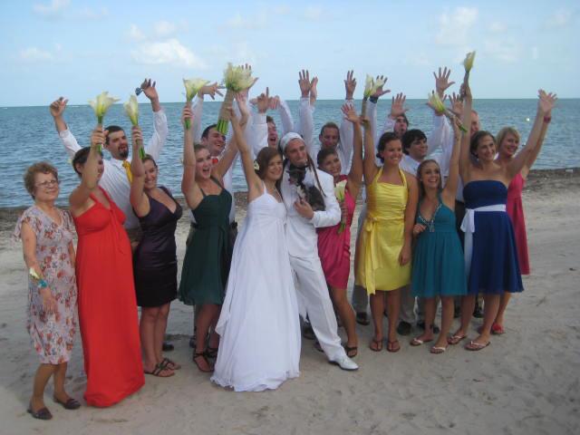 Once we had exchanged hugs with everyone and were properly congratulated, the bridal party headed to the beach for a photo session. We took a ton of photos, which I’ll post as soon as I get them from Edé, our photographer, next week. After taking a few shots by the water, we headed to a lifeguard tower for few more.