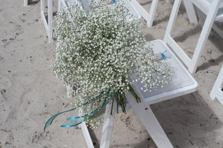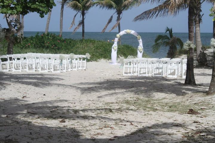 At that point I hadn’t had a chance to check out the set up, but Ana really did a great job. She tied bushels of baby’s breath around many of the palm trees and a few of the chairs. She added little touches of jade wherever she could and, since it was such a hot day, placed handheld wooden fans at every seat. With the ocean backdrop, I don’t think anyone who came could deny that it was a beautiful ceremony.
