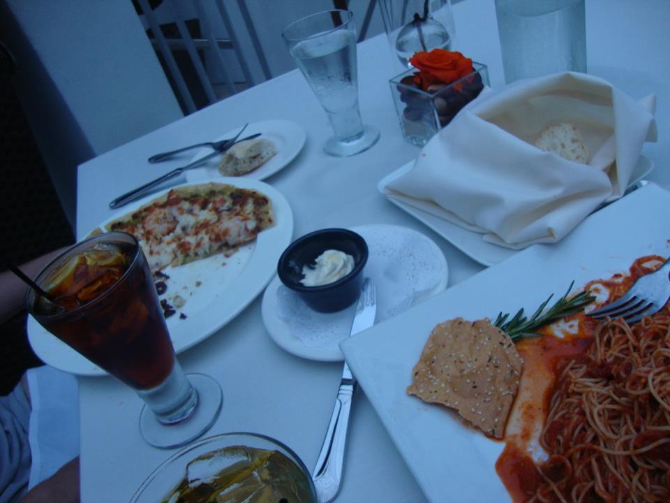 Judy and JoAnn also surprised us with a nice dinner, so we headed down to the hotel’s restaurant around 7:30 p.m. or so. It was so nice out that we decided to eat outside, and the entire evening was incredibly peaceful. I kept telling Addam that I felt “so relaxed,” to which he’d laugh and tell me that that’s exactly what his mom says when she’s on vacation. I couldn’t help it. I was exactly where I wanted to be, and I was being pampered. As much fun as I had at the wedding, it felt really good to relax and enjoy my husband.