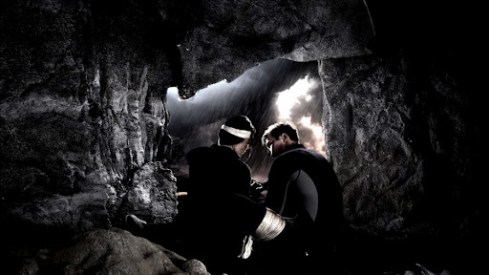 Katniss finds a cave, where she attempts to nurse Peeta back to health. Low on food, she quickly discovers that Haymitch will only send supplies as she plays into the “star-crossed lovers” theme that Peeta set up in the pre-game interviews. In the cave Katniss and Peeta express their love for each other and share a number of introductory kisses — causing both readers and Katniss to question Peeta’s true intentions. Is he playing the game or is he expressing his true feelings in what may be his final moments?