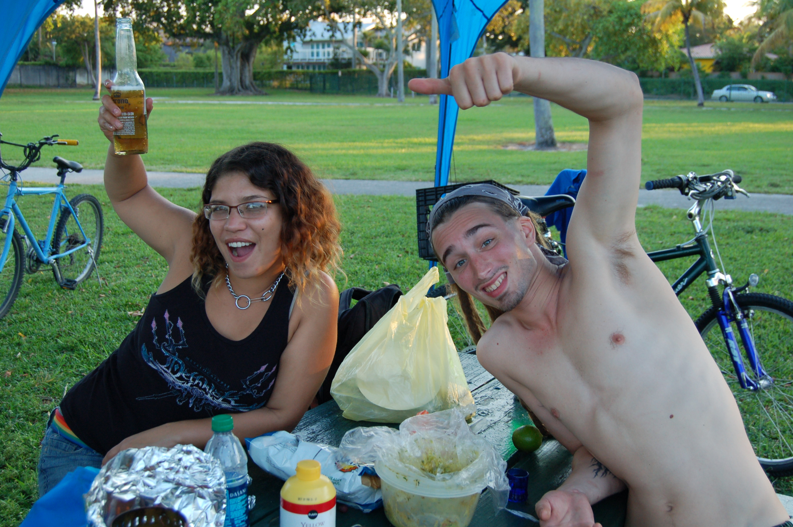 Addam and I packed up the bikes and headed to the park at about 3 p.m., making a brief stop at Publix to pick up some last minute items that we’d need for the bar-b-que. Once we got to Morningside Park I realized that I forgot to grab some buns, so I ran back to the apartment while Addam set up our shade tent.