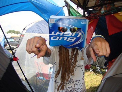 The gang woke up on Thursday morning ready for a full day of music. After a quick breakfast we headed out to Centeroo to check out this year’s digs, only to find that the line to get in was impossibly long. Since there weren’t any acts that we felt a dire need to see that morning, we decided to kick back at the campsite until Dale Earnhardt Jr. Jr. played at 7:15 p.m. By that time the line had gone down and it took us just a few short minutes to make it in. (Probably because everyone was already inside checking out the set. Take a look at this link for a video that highlights just how large the crowd was.)