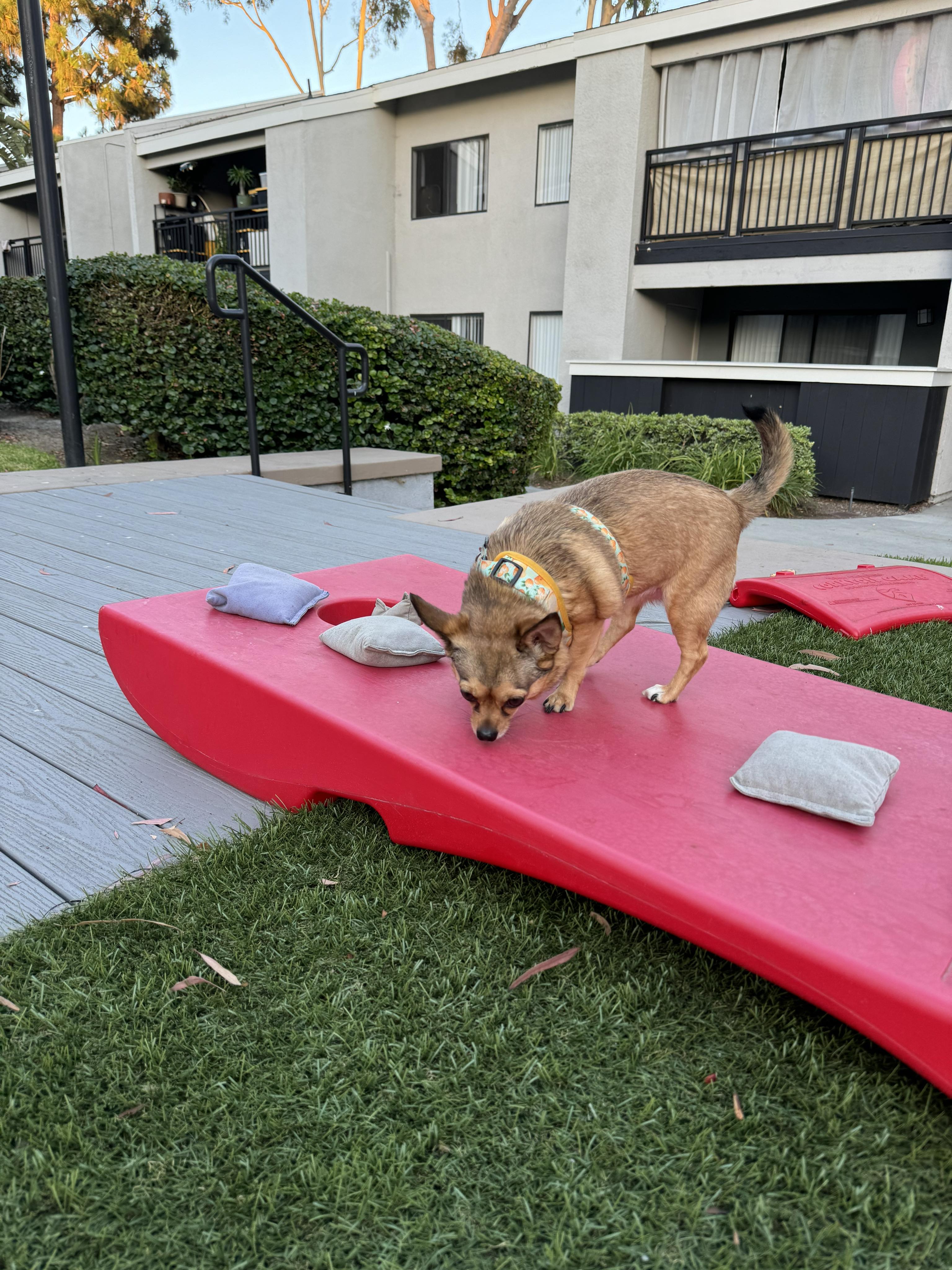 Lemon and I take anywhere from two to four walks a day, which has allowed us the opportunity to explore our new apartment complex from top to bottom. Together we found the game area and the puppy spa, neither of which we will likely use too much. Lemon’s met a few doggos and I’ve met a few of our neighbors. We’re really beginning to get a feel for the lay of the land, but there are still plenty of new smells to keep Lemon interested and our walks long.