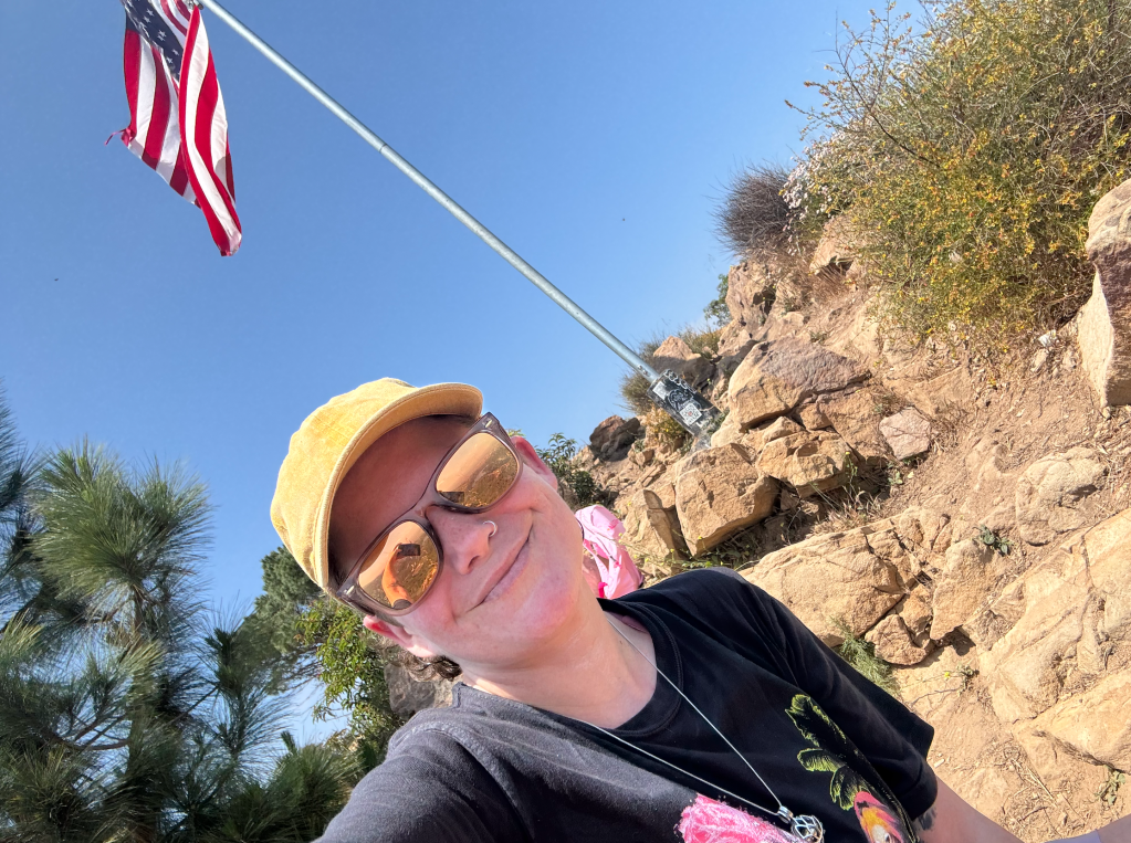 An American flag that serves as a memorial dedicated to victims of the Sept. 11 attacks stands at the edge of the peak. I hung out for a few minutes while I caught my breath and enjoyed some cold water by the cliff. I saw a couple of small groups or solo hikers pass through, but I did get to enjoy a bit of alone time, which was super peaceful. I actually saw more people at the Wisdom Tree than I did at the Hollywood sign, which surprised me.