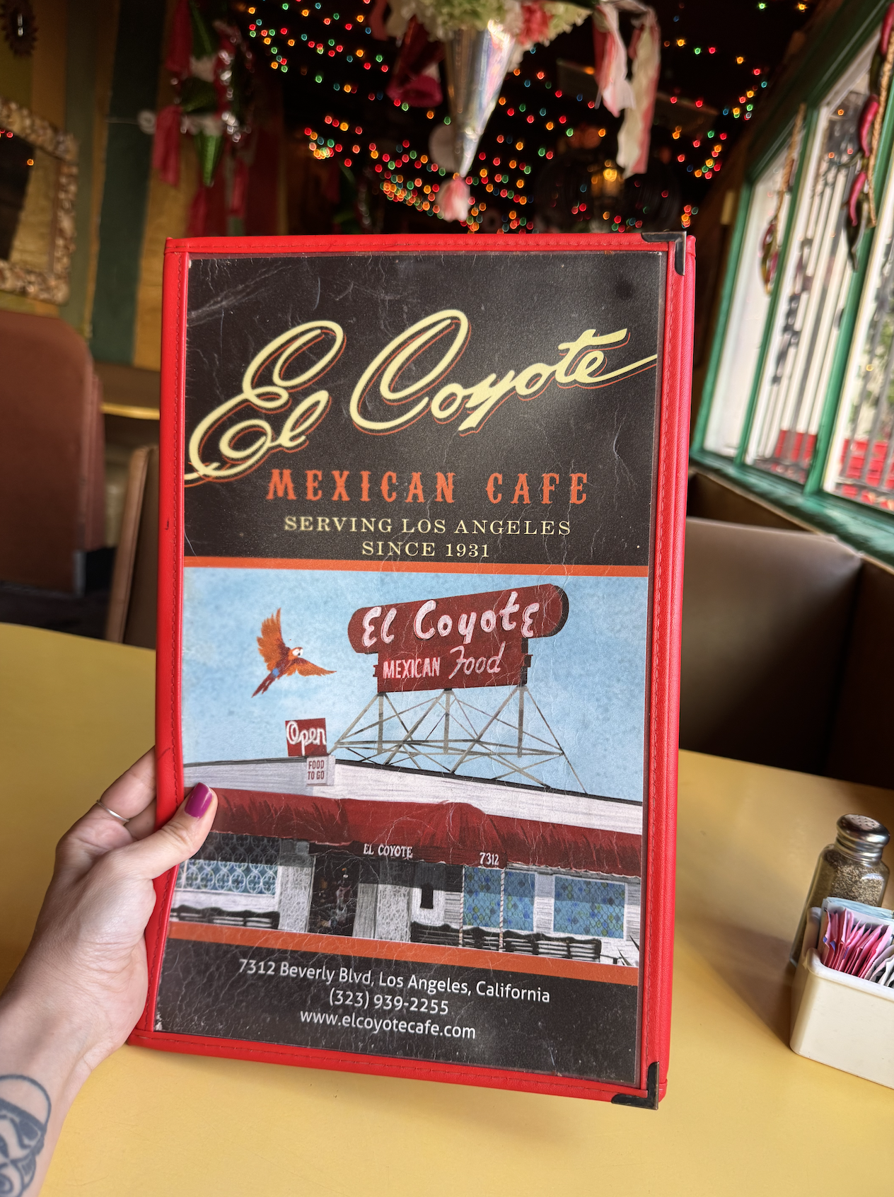As you may know, El Coyote is the last place that actress Sharon Tate et al. ate the night that they were brutally murdered. (It was also a filming location for Tarantino’s film.) Given the theme of my day, I had to check it out.