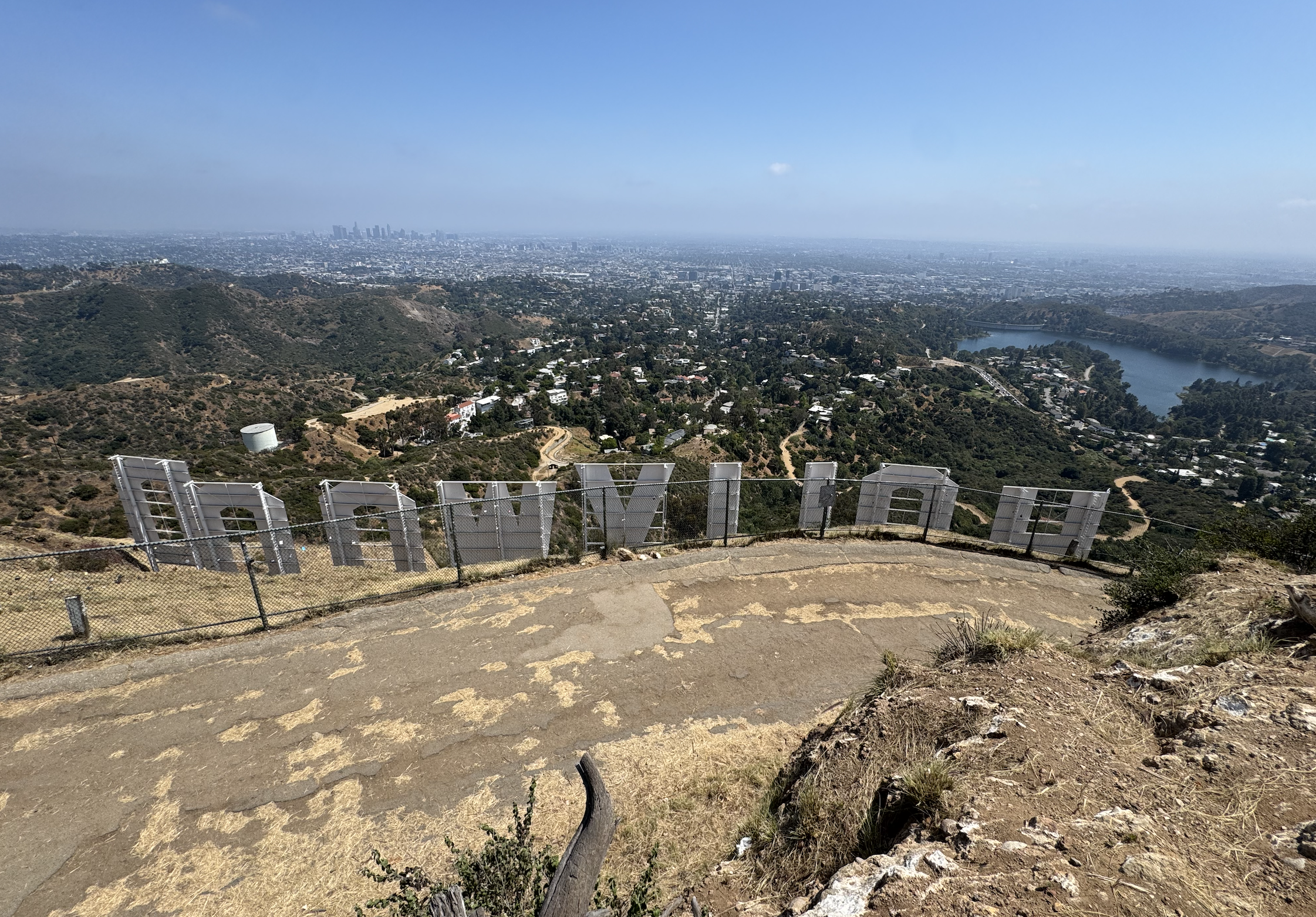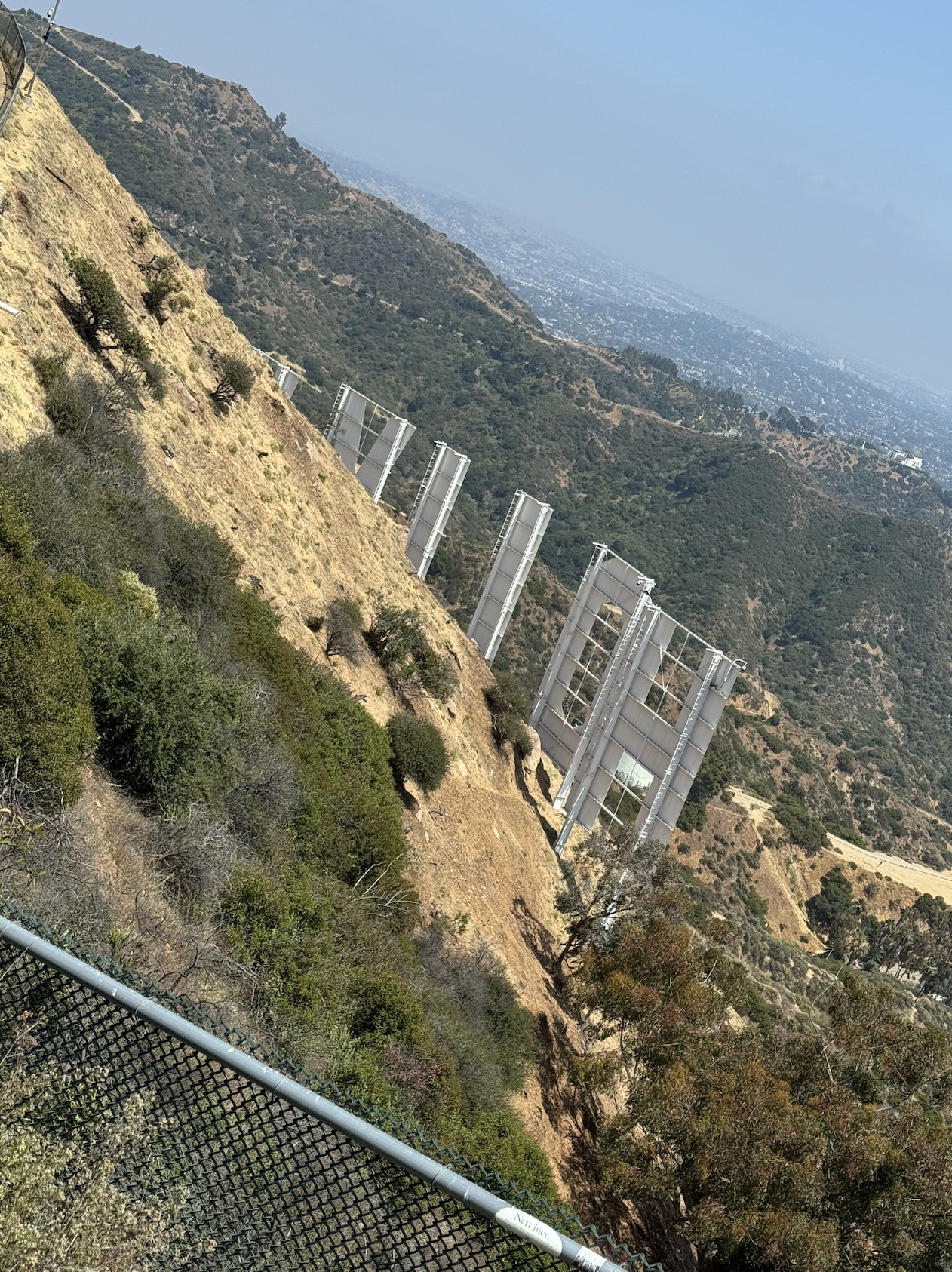 My last stop before hitting the Hollywood sign was Hugh Hefner Overlook at the top of Mt. Lee, and honestly — whomp whomp. Maybe it used to be something, but from where I stood I just saw a fence and some power lines. Maybe someone moved the rock? There just wasn’t a real overlook to speak of, and after all the other amazing peaks and views, this one just left me underwhelmed and slightly confused. (I’m sure that’s not the only time Hugh Hefner has left someone feeling that way, am I right?!)